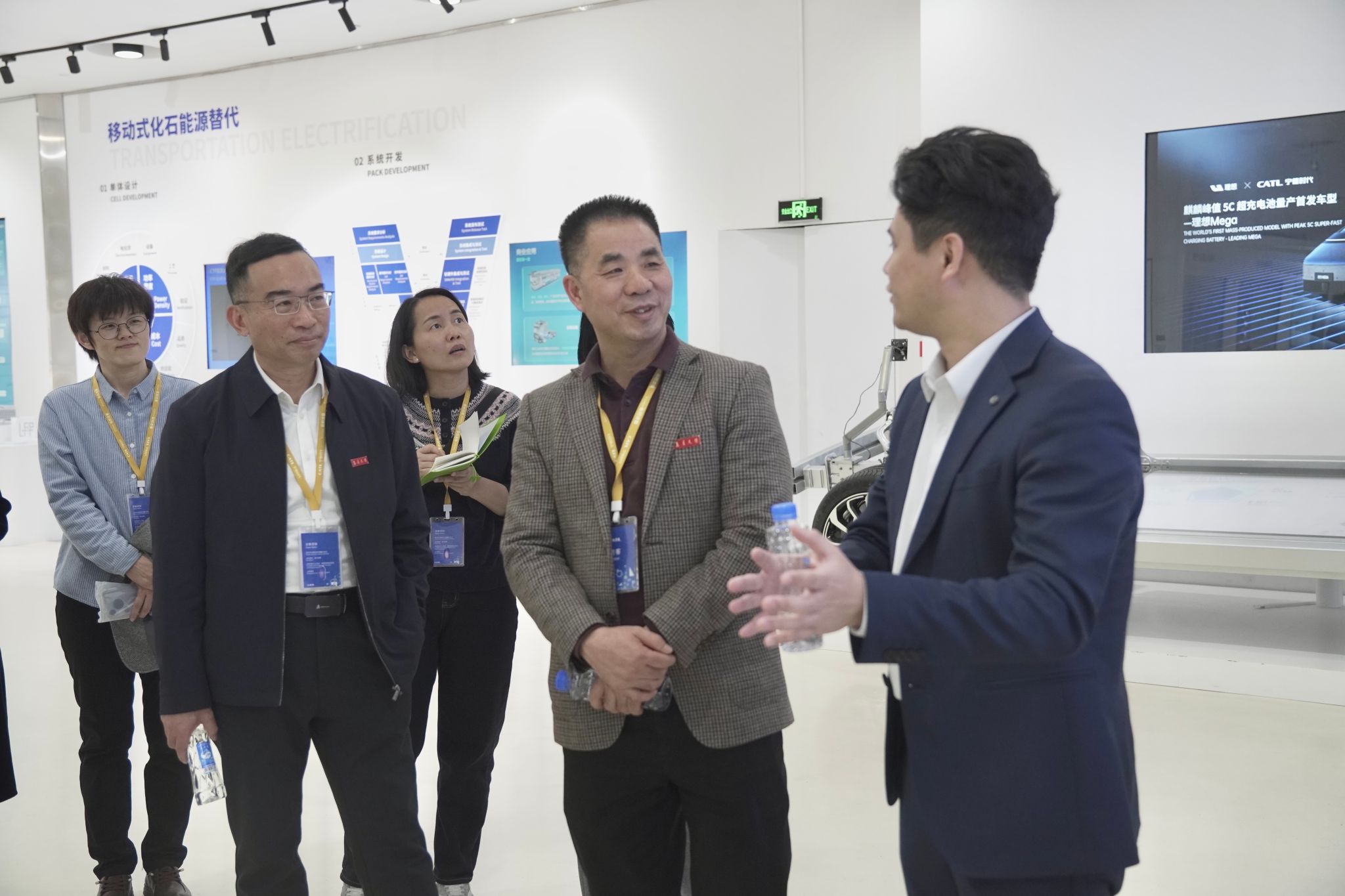 许志龙一行首先参观宁德时代科技楼展厅,了解企业发展历程、发展战略、产业布局、技术创新等。随后,前往湖东基地产线,实地考察了作为全球顶尖动力电池系统供应商所拥有的现代化、智能化制造产线,深入了解了宁德时代在技术创新、生产制造及品质管控等方面的先进经验。