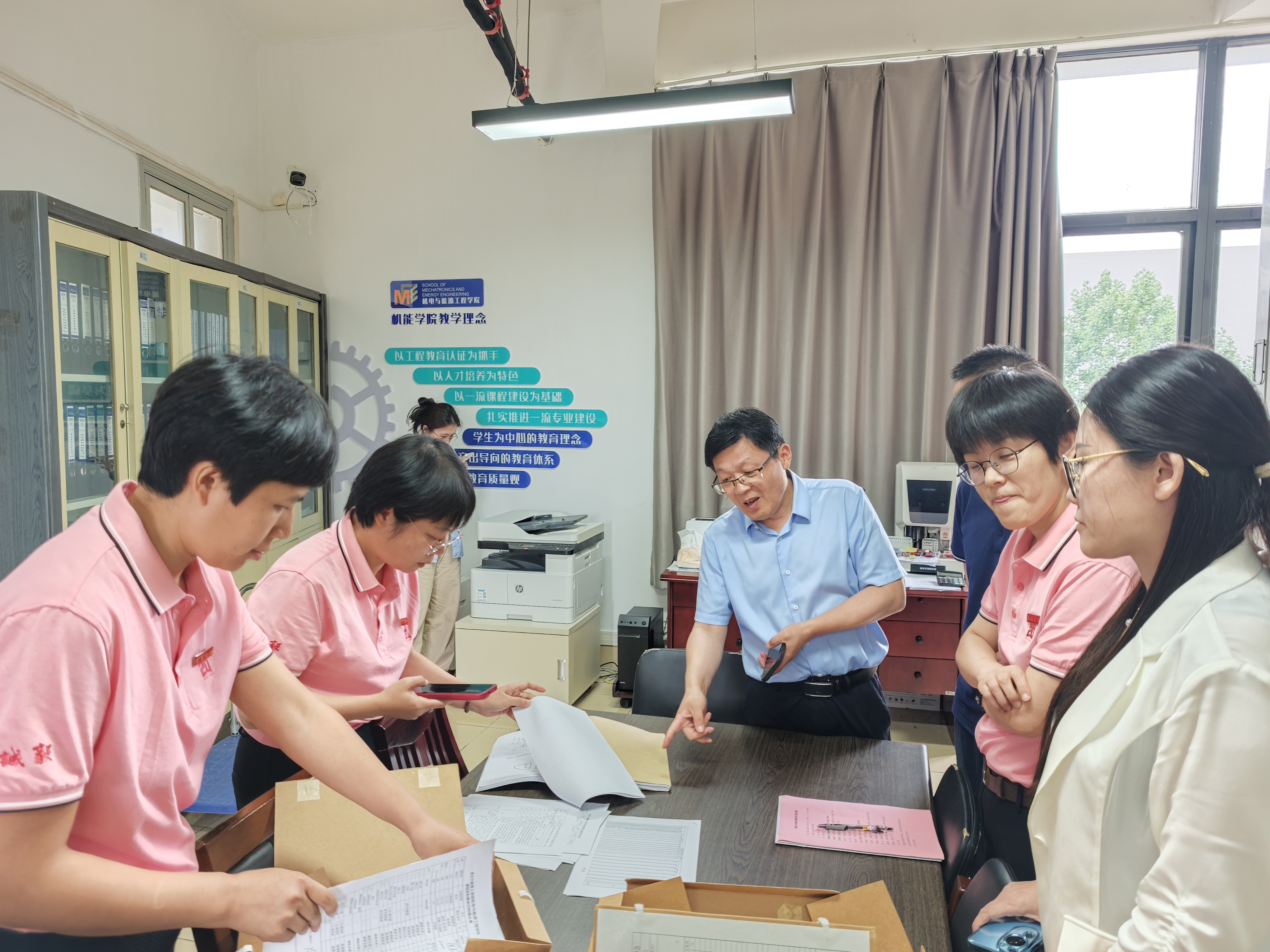 最后,在教学办周丽梅老师的带领下,参观了机能学院教学档案室,认真学习其工程认证经验。浙大宁波理工学院作为全国首批通过工程认证的独立学院(前身)之一,其在课程档案、试卷档案、资料归档等方面都有丰富的成熟经验。