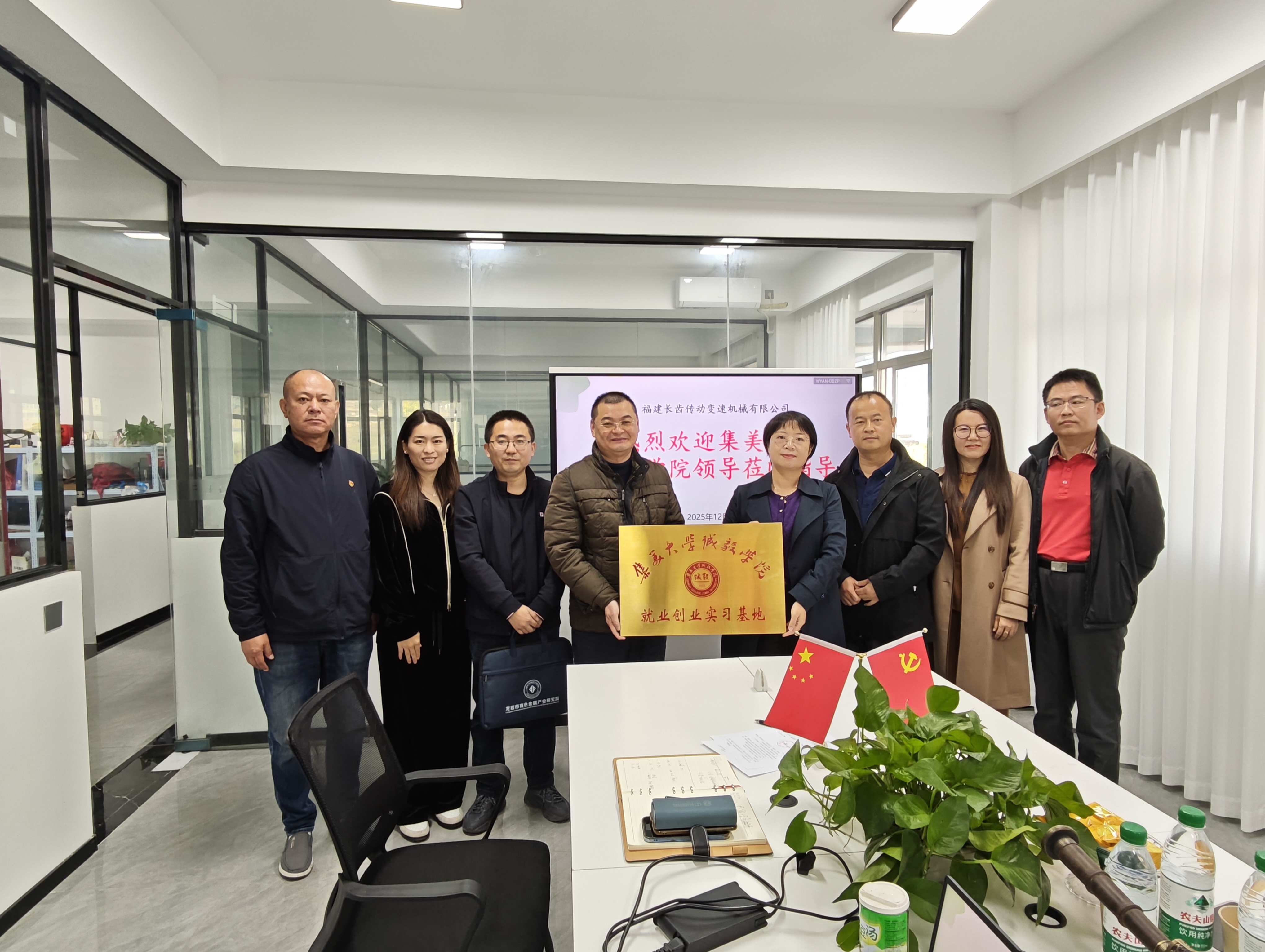 调研团队首站抵达福建长齿传动变速机械有限公司。公司董事长何镜鸿及相关技术负责人陪同参观智能化生产车间,并介绍了企业在传动系统智能化升级中对人工智能、数字孪生等技术的迫切需求。座谈会上,林雄萍副主任介绍了我系在智能制造、机械工程等领域的学科优势与人才培养特色,双方围绕校企实习基地共建、技术攻关协作等内容展开深入交流,初步达成合作意向,签订就业创业实习基地协议。