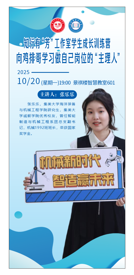 【讲座预告】知行有“芳”工作室学生成长训练营——做自己岗位的“主理人”