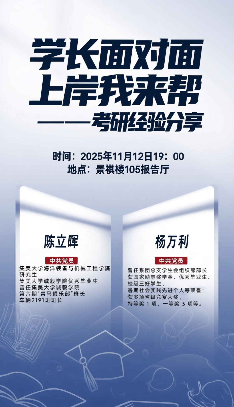 【讲座预告】学长面对面,上岸我来帮--考研经验分享