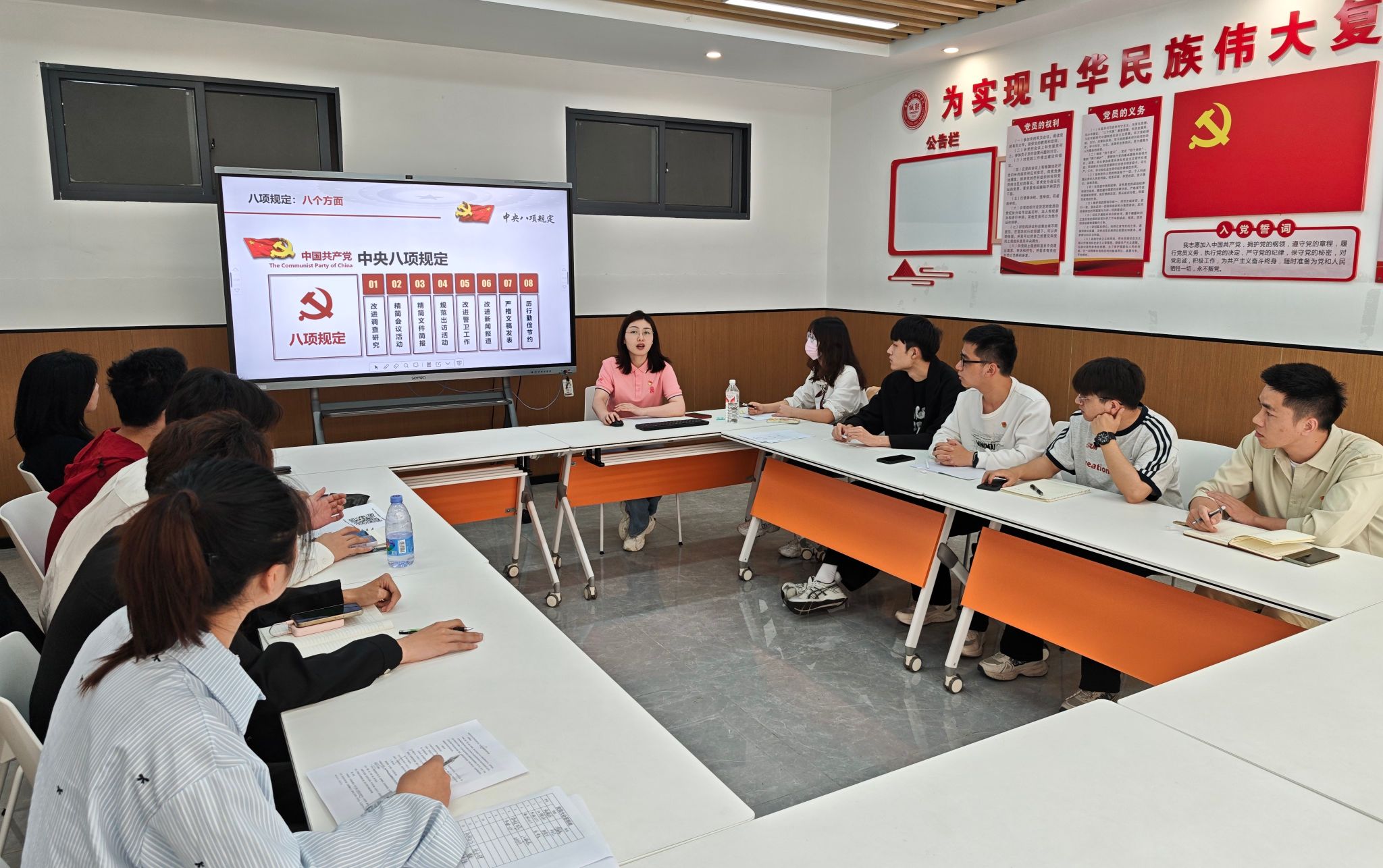 党课围绕中央八项规定的政策出台背景、主要内容、 关键词解读展开详细讲解,结合公务出行、接待等具体政策图解,将抽象的纪律要求转化为生动实例。学习过程中,党员们结合自身即将踏入社会的实际情况,就如何在未来工作生活中践行八项规定展开热烈讨论。现场还组织观看了与八项规定相关的廉洁教育短片,以真实案例敲响廉洁警钟,强化纪律意识。
