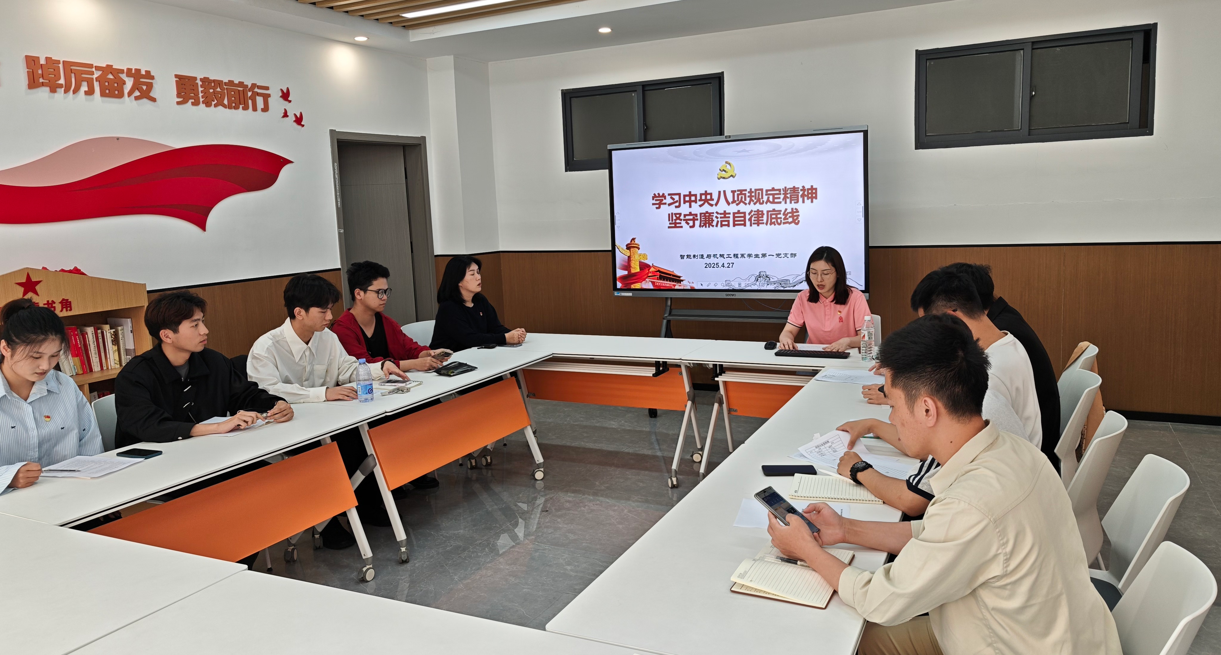 为深入学习贯彻中央八项规定精神,提升毕业生党员廉洁自律意识,4月27日,智能制造与机械工程系学生第一党支部开展“学习中央八项规定精神,坚守廉洁自律底线”专题党课暨毕业班党员廉洁教育活动,支部全体党员参加。