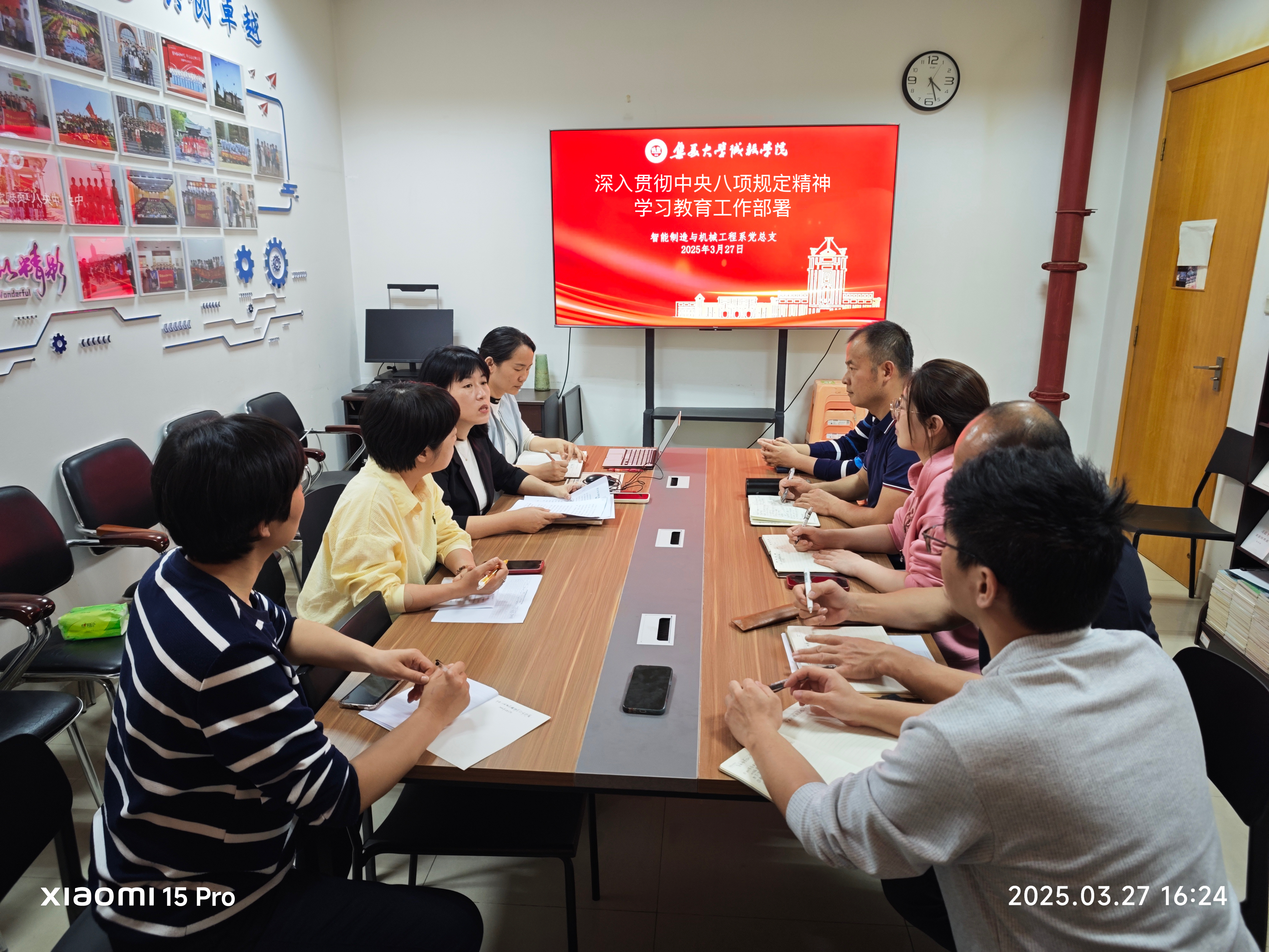 会后,各党支部积极响应,分别召开专题会议,结合工作实际展开研讨并进行相关工作安排。在全面部署深入贯彻中央八项规定精神学习教育工作的基础上,教工党支部还重点围绕师德师风建设、教师纪律建设、科研经费规范使用等内容进行强调和学习,学生党支部则从学风建设、党员的先锋模范作用发挥等方面展开讨论。大家纷纷表示,要以中央八项规定精神为标尺,严于律己、务实担当,以实际行动推动作风建设常态化、长效化。