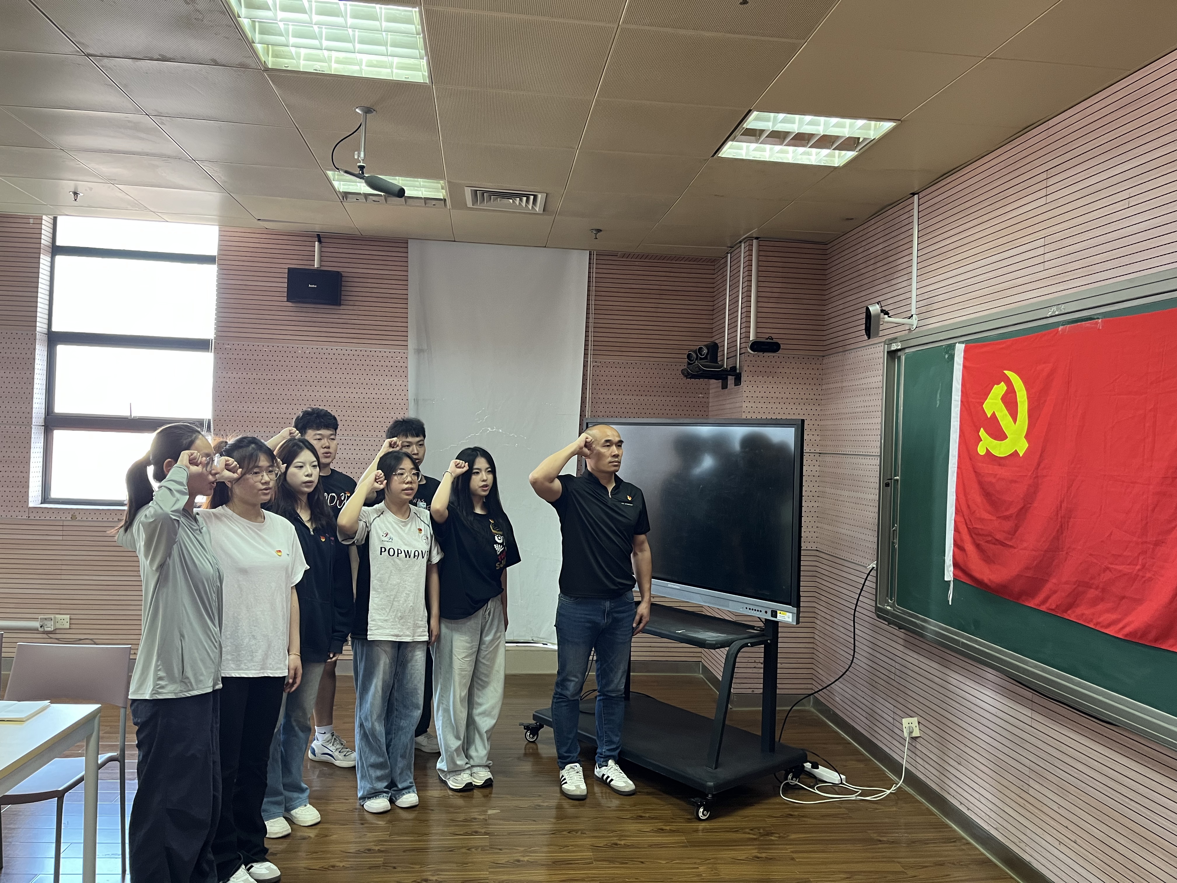 在鲜红的党旗前,全体党员庄严肃立。支部书记带领老党员重温入党誓词,“我志愿加入中国共产党……”的铿锵誓言响彻会场,字字千钧唤醒入党初心。随后,7名新党员首次面向党旗庄严宣誓,光荣加入党组织。