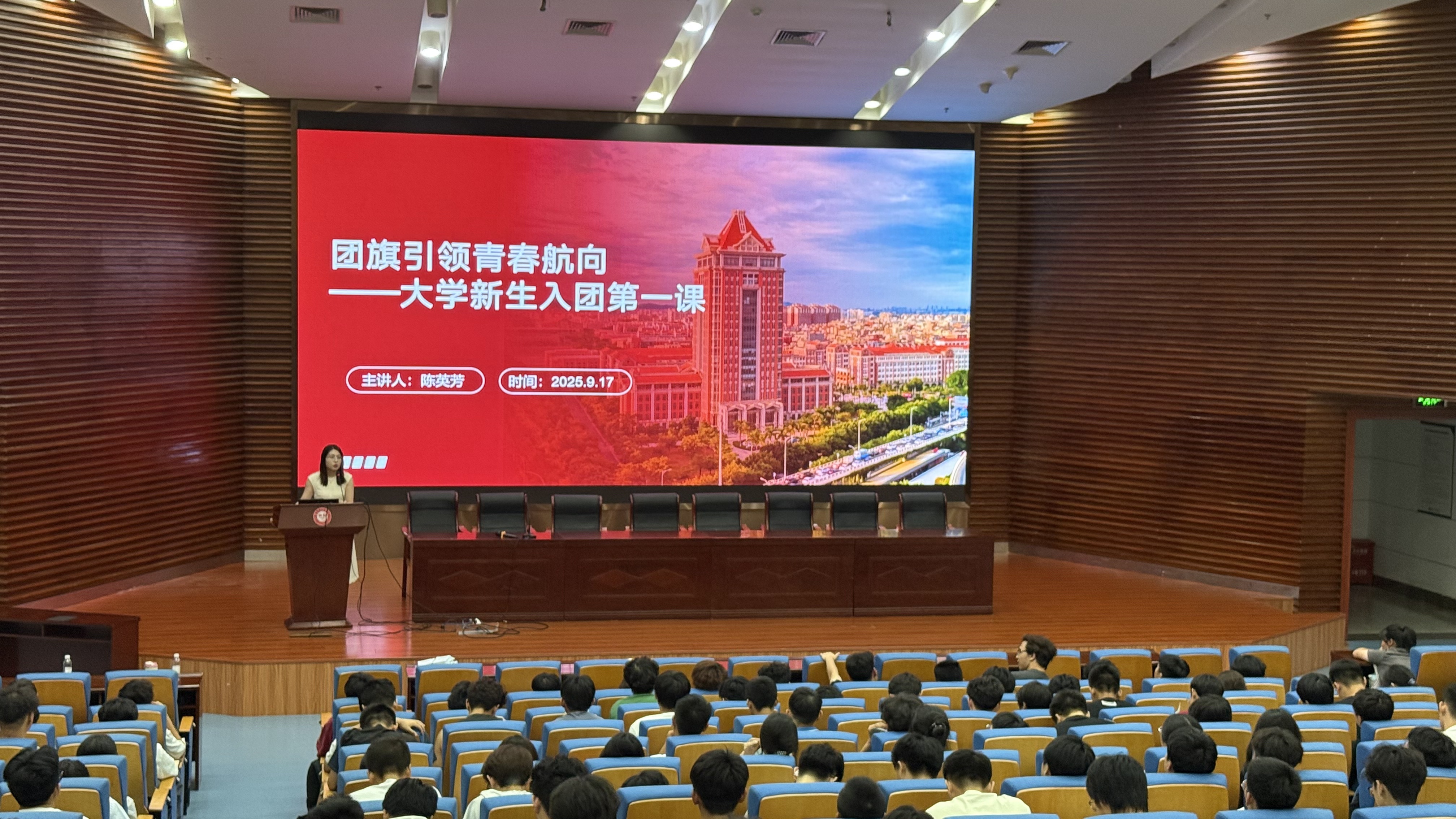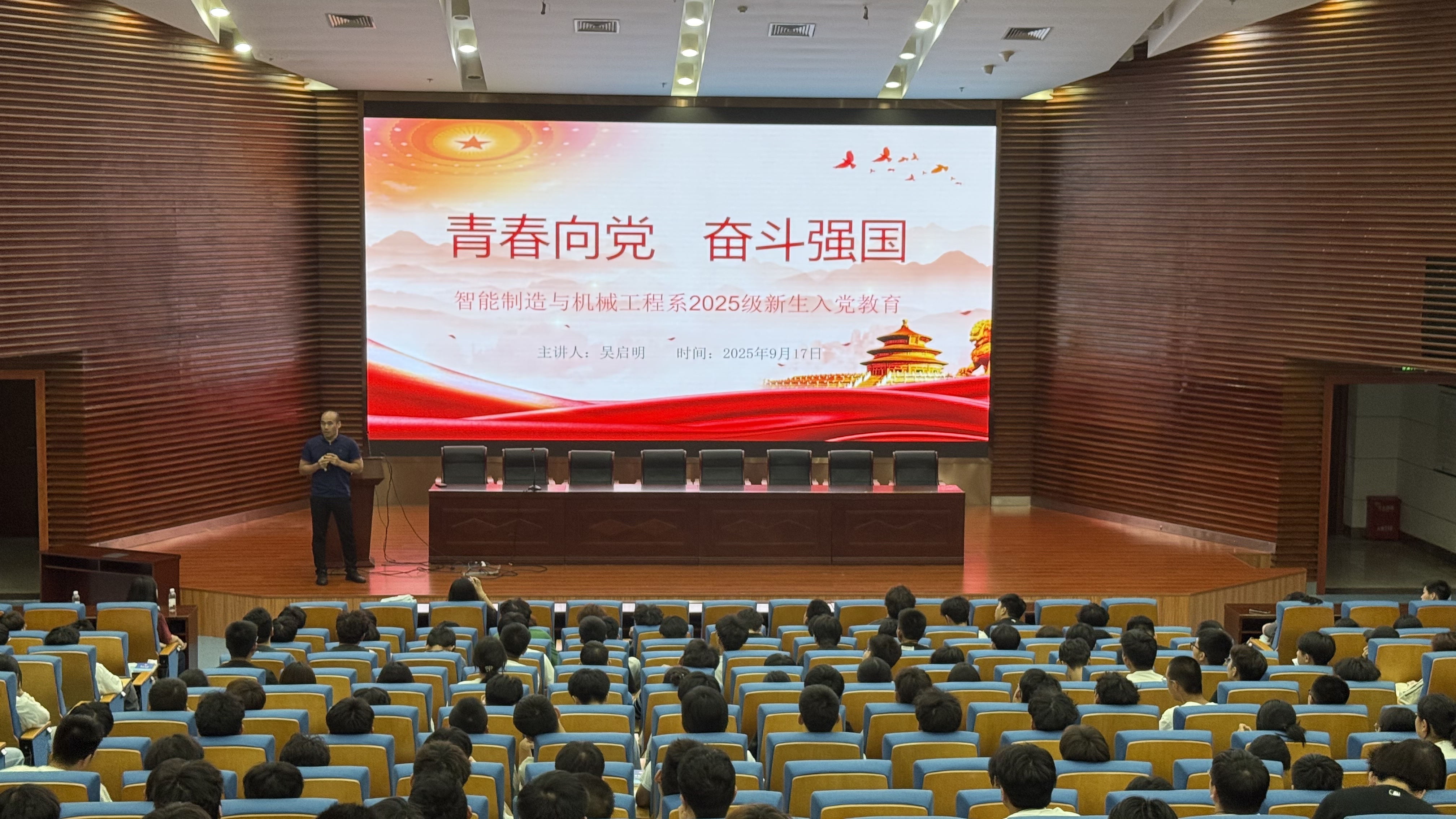 为引导2025级新生坚定理想信念,明确入团入党的初心与方向,帮助新生扣好大学生涯“政治第一粒扣子”,9月17日,知行有“芳”辅导员工作室面向全体新生开展“知·思”红色课堂活动,为新生进行入团入党专题教育。活动邀请智能制造与机械工程系党总支组织员吴启明主讲入党教育,系学生第一党支部书记陈英芳主讲入团教育,系2025级全体新生参加。