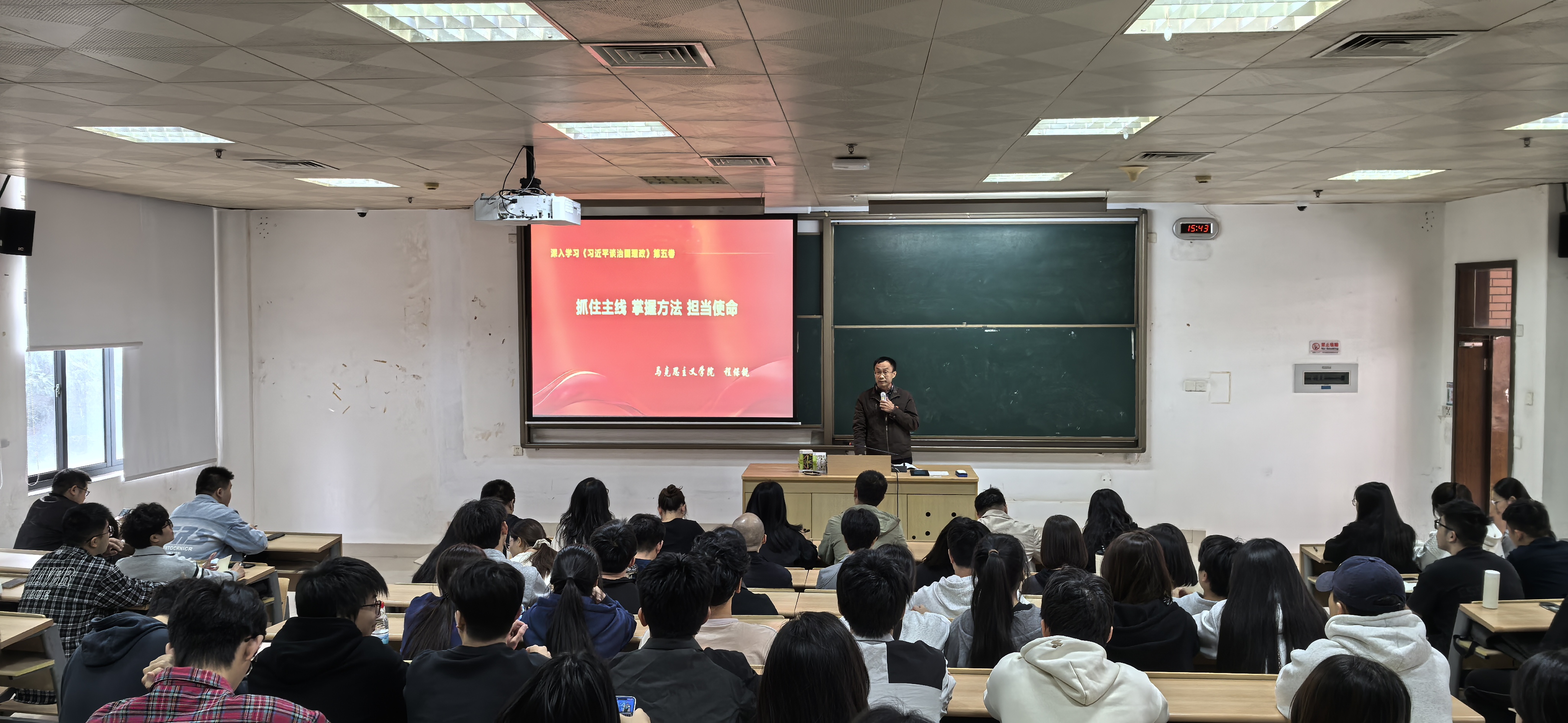 2025年11月19日,我系党总支组织开展学习《习近平谈治国理政》第五卷专题党课。邀请马克思主义学院程保锐副教授作题为“抓住主线 掌握方法 担当使命--深入学习《习近平谈治国理政》第五卷”的专题宣讲。全体师生党员及入党积极分子参与听讲。