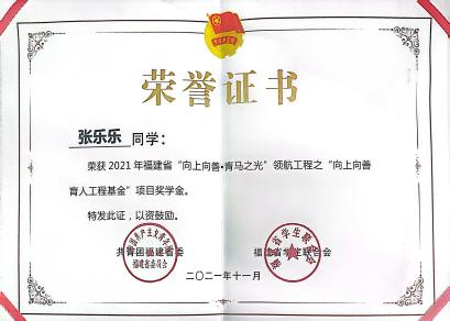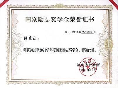 坚定理想信念。高中时期,她突遇家庭变故,只能寄居在亲戚家,但她并未怨天尤人,也并未自怜自艾,人如其名,乐观向上的她坦然接受命运的跌宕,选择迎难而上。她从一个个老党员的故事中汲取力量,通过申请校内勤工俭学、利用假期做校外兼职减轻了家庭负担。她深知大学学习的重要性,提高课堂学习效率,刻苦勤奋,凭借优异的成绩及表现获得国家奖学金、国家励志奖学金、福建省“向上向善育人工程基金”项目奖学金、“集美学村”奖学金等10多项奖学金荣誉。